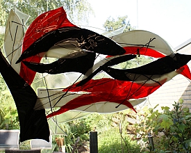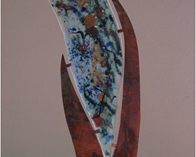 Samensmelten van verschillende lagen glas, dat is glasfusing. Inmiddels voor veel mensen een bekende techniek. Een techniek, die, zo blijkt uit opgravingen, de oude Egyptenaren al beheersten. Met het verdwijnen van die beschaving is ook het samensmelten van glas vanaf dat moment verdwenen. Pas rond 1935 kwam glasfusing weer in beeld. De laatste jaren neemt glasfusing een grote vlucht. Toepassingen van gefused glas zijn legio. In een adem noemen we ook slumpen: het, in een volgend stadium, vormen van het gefusede glas. Dat kan in een mal, fabrieksmallen of zelfgemaakte. Schalen in vele maten en vormen zijn wel het meest voorkomend. Wij maken zelf mallen en vormen daar onze objecten in, maar gebruiken ook fabrieksmallen voor schalen.