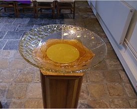 Bij herinrichting van een kerk kunnen wij veel betekenen. Met glas in lood, maar zeker ook met glasfusingobjecten.